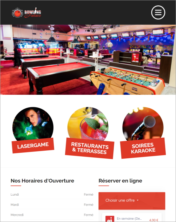 Site vitrine d’un bowling réalisé en WordPress5.7. Le client souhaitait pouvoir prendre des réservations en ligne pour les pistes, le lasergame, la VR. Un plugin a été modifié pour cette demande.
